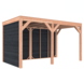 De overkapping is opgebouwd uit onbehandeld Douglas hout en afgewerkt met zwart Zweeds rabat. De stevige staanders van 12 x 12 cm geven stabiliteit. Douglas hout gaat van zichzelf 10 tot 15 jaar mee en kan extra beschermd worden met een geschikte beits of olie.