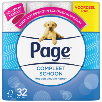 Dit toiletpapier van Page ‘compleet schoon’ is natuurlijk, zacht, sterk en het heeft een leuke puppyprint op iedere rol. Dit is een voordeelverpakking met daarin maar liefst 32 rollen aan toiletpapier. Page toiletpapier ‘compleet schoon’ is extra zacht en biedt ultiem comfort, zoals een vleugje katoen.
