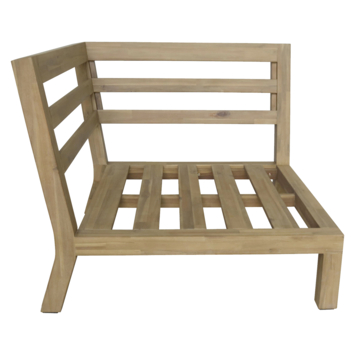 Het palletonderstel hoek Trevor is het perfecte fundament voor je eigen loungehoek in de tuin of op het terras. Dit onderstel van acaciahout heeft een stoere uitstraling en biedt een comfortabele plek voor 1 persoon. Met een breedte van 95 cm en diepte van 95 cm kun je het onderstel naar wens combineren met kussens of andere loungeaccessoires. De zithoogte van 25 cm maakt het ideaal voor een ontspannen zitervaring. Het gebeitste hout zorgt ervoor dat het onderstel extra beschermd is tegen weer en wind. De bank wordt zonder kussens geleverd, maar je kunt het zelf aanvullen met kussens die je het meeste comfort bieden. Het onderstel is stevig en ontworpen om lang mee te gaan, zodat je jarenlang kunt genieten van dit meubel. Met het palletonderstel hoek Trevor geef je je tuin of terras een stijlvolle en functionele zithoek die zowel praktisch als aantrekkelijk is.
