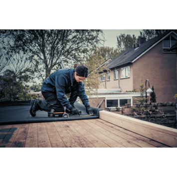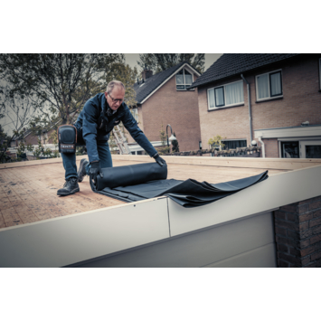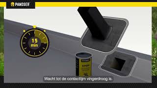 Je maakt de ondergrond stofvrij, rolt de EPDM uit en verlijmt het oppervlak met Pandser Spraybond of Pandser PU-Bond. Voor opstanden en gevelranden gebruik je Pandser Bonding Adhesive en werk je alles netjes aan met een aandrukroller. Dankzij het formaat van 3 x 4,2 meter heb je het dak snel klaar zonder veel snijden of overlappen. Zo werk je snel en zonder gedoe.