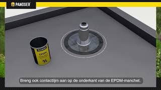 Je maakt het dak stofvrij, rolt de EPDM uit en verlijmt het oppervlak met Pandser Spraybond of Pandser PU Bond. Voor opstanden en randen gebruik je Pandser Bonding Adhesive. Met een aandrukroller duw je de folie vast en werk je de naden en randen netjes af. Door het grote formaat van 3 x 5,6 meter heb je 16,8 m² dakoppervlak klaar in één beweging. Zo werk je snel en zonder gedoe.