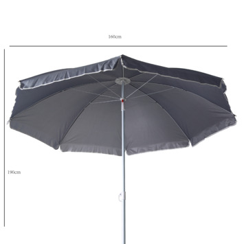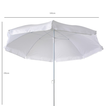 De parasol Porto Marie Ø180 cm zorgt voor de perfecte schaduw, zodat je op warme dagen heerlijk kunt relaxen. Deze stijlvolle parasol heeft een retro uitstraling en is gemaakt van stevig metaal en polyester. Hij is 150 cm hoog en heeft een diameter van 180 cm. Wil je er een voetstuk bij? Houd dan rekening met de diameter van de stok, die is 1,9 cm. Deze parasol is verkrijgbaar in verschillende kleuren. Als je 'm in de bouwmarkt koopt, kun je zelf een kleur kiezen, maar bij een online bestelling is de kleur een verrassing! Beschikbare kleuren: grijs, wit, blauw en roze.