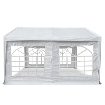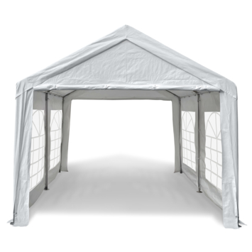 Met deze partytent van 3 x 4 meter maak je snel een overdekte plek in je tuin. De witte tent oogt licht en biedt bescherming bij wisselvallig weer. Het waterafstotende doek helpt om gasten en tuinmeubelen droog te houden wanneer er een bui passeert.
