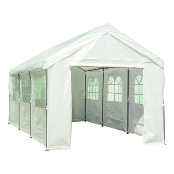 Het feest kan beginnen met de [partytent festival]. Deze stevige partytent met wit [polyethyleen doek] is [600 cm lang], [300 cm breed] en [290 cm hoog]. De partytent heeft [versterkte randen en hoeken] en een [verzinkt stalen buizenframe]. Deze partytent is inclusief zijwanden met boogvensters. Zo blijf je beschermd tegen regen en wind en valt er nog voldoende licht binnen. Kortom, de [partytent festival] is een grote partytent voor tuinfeesten of festivals.