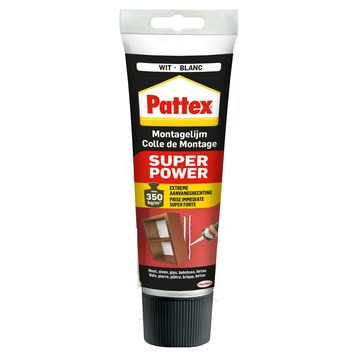 De montagelijm van Pattex is ideaal om te lijmen, te monteren én af te dichten. De Super Power lijm op waterbasis heeft immers een extreme aanvangshechting en plakt verschillende materialen.