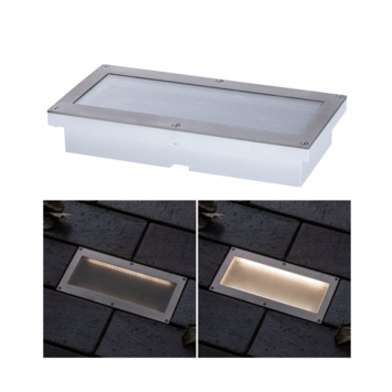 Stralende straatstenen helemaal zonder kabel: De solaire vloerinbouwlamp Aron 20x10 cm groot, kan volledig onafhankelijk van een stroomaansluiting worden geplaatst. Overdag worden de accu's door zonnelicht opgeladen en in het donker gaat een oriëntatielicht branden, dat tot een functionele verlichting wordt zodra de bewegingsmelder in de nabijheid personen waarneemt. Doordat de zonnecellen iets naar achteren zijn geplaatst, zijn ze vrijwel onzichtbaar en neemt men slechts een gelijkmatig lichtgevend oppervlak waar. De bodeminbouwlamp is dankzij beschermingsgraad IP67 gegarandeerd waterdicht, roestvast en geschikt voor de inbouw in berijdbare zones buitenshuis - de lamp draagt met gemak tot 500 kg.