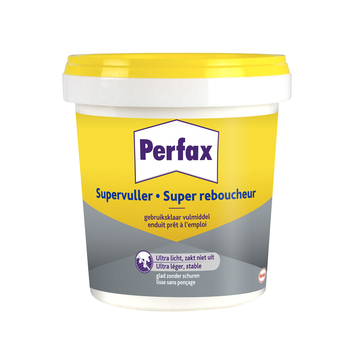 De supervuller in de kleur wit (700 ml) van Perfax is geschikt voor het vullen van kleine en grote gaten in steen, gips, beton en cement, hout en polystyreen. De vuller is licht en gebruiksklaar. Tip: heb je al een plamuurmes? Indien dat niet het geval is: aanschaffen dat mes via de webshop!