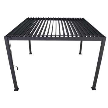 Geniet het hele jaar door van het buitenleven met deze aluminium pergola met lamellendak! De pergola is gemaakt van hoogwaardig aluminium en is ontworpen om langdurige bescherming te bieden tegen de verschillende weersomstandigheden. Bij regenachtig weer zit je met de gesloten lamellen je lekker droog. Het regenwater wordt gecontroleerd afgevoerd via de palen. Daarnaast zorgt het lamellendak er voor dat je altijd de perfecte hoeveelheid zon en schaduw hebt, zelfs op de heetste dagen van het jaar. Naast de praktische toepassing, heeft de pergola ook nog een schitterende en luxueuze uitstraling. Dankzij het moderne en minimalistische ontwerp is deze pergola een echte blikvanger in je tuin. Bovendien is er ook de mogelijkheid om optioneel extra accessoires toe te voegen, zoals: een zijscherm of aluminium lamellenpanelen. Hierdoor kan je de pergola helemaal naar wens inrichten. Dankzij de duidelijke handleiding en instructievideo is de pergola eenvoudig te installeren. Met de hulp van 2 personen is de in ongeveer 3 uurt opgebouwd. Wij adviseren om de pergola te bevestigen op een solide, harde ondergrond. Bijvoorbeeld door het plaatsen van betonpoeren.