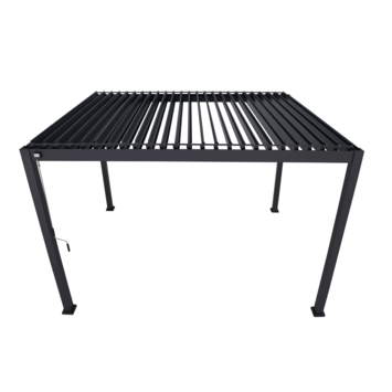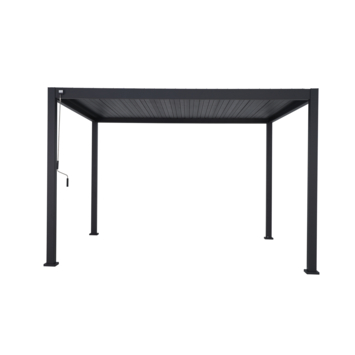 Het lamellendak van de pergola kun je eenvoudig zelf bedienen (open en dicht), waardoor je in elke situatie comfortabel buiten kunt zitten.