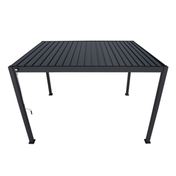 Geniet het hele jaar door van het buitenleven met deze aluminium pergola met lamellendak! De pergola is gemaakt van hoogwaardig aluminium en is ontworpen om langdurige bescherming te bieden tegen de verschillende weersomstandigheden. Bij regenachtig weer zit je met de gesloten lamellen je lekker droog. Het regenwater wordt gecontroleerd afgevoerd via de palen. Daarnaast zorgt het lamellendak er voor dat je altijd de perfecte hoeveelheid zon en schaduw hebt, zelfs op de heetste dagen van het jaar. Naast de praktische toepassing, heeft de pergola ook nog een schitterende en luxueuze uitstraling. Dankzij het moderne en minimalistische ontwerp is deze pergola een echte blikvanger in je tuin. Bovendien is er ook de mogelijkheid om optioneel extra accessoires toe te voegen, zoals: een zijscherm of aluminium lamellenpanelen. Hierdoor kan je de pergola helemaal naar wens inrichten. Dankzij de duidelijke handleiding en instructievideo is de pergola eenvoudig te installeren. Met de hulp van 2 personen is de in ongeveer 3 uurt opgebouwd. Wij adviseren om de pergola te bevestigen op een solide, harde ondergrond. Bijvoorbeeld door het plaatsen van betonpoeren.