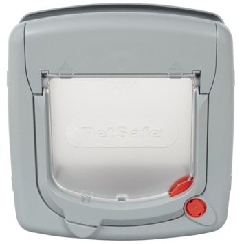 Het Petsafe kattenluik Deluxe 340 grijs, is een kattenluikje met een fraai design voor katten met een gewicht van maximaal 7 kg. Het kattenluikje bevat een extra tochtrand rondom het bewegende deurtje, waardoor de kans op tocht verminderd wordt. Dit type kattenluik is geschikt voor plaatsing in dikke deuren of muren tot een maximale dikte van 54 mm. I.c.m. het Petsafe tunnelstuk 350 grijs, is dit kattenluik ook geschikt voor plaatsing in deuren of muren vanaf 54 mm. Het Petsafe kattenluik Deluxe 340 grijs bevat een 4-standen draaiknop waarmee u de toegang voor uw kat kunt regelen. Deze 4-standen zijn: geheel open - geheel gesloten - alleen in - alleen uit.