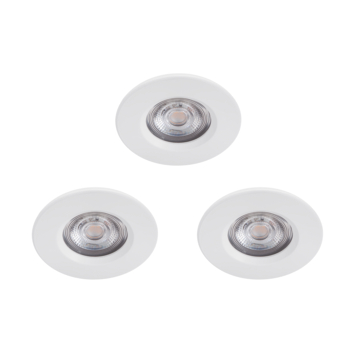 Deze drie Philips Dive inbouwspots voor de badkamer zijn uitgevoerd in het wit, met een moderne uitstraling. Het gelijkmatige, warmwitte LED-licht is zeer krachtig en kan bovendien met de juiste dimmers worden gedimd. Door de beperkte hoogte kunnen de spotjes in bijna elk verlaagd plafond worden gemonteerd. Ook direct boven bad of douche, want ze hebben ze een IP65-classificatie, die aangeeft dat ze uitstekend geschikt zijn voor vochtige ruimtes.