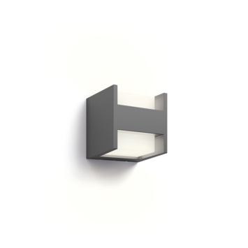 Ben je op zoek naar een energiezuinige buitenlamp? De Philips Arbour buitenwandlamp met UltraEfficient technologie maakt gebruik van nieuwe technologie om zowel de CO2-uitstoot als materiaalverspilling te verminderen. Bovendien het energieverbruik te verlagen met wel 50% energiebesparing. Met een levensduur van 50.000 uur biedt deze waterbestendige (IP44) buitenlamp een levensduur die meer dan 3 keer langer is dan vergelijkbare LED-buitenverlichting van Philips. Verlicht je voordeur of terrasmuur met deze antracietkleurige wandlamp met warmwit licht.
