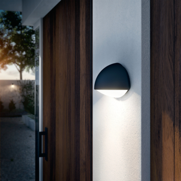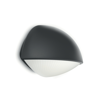 Philips heeft een verlichtingsarmatuur voor elke ruimte. De buitenverlichting bestaat uit eigentijdse maar duurzame modellen, zoals deze Dust wandlamp met een geïntegreerde ledlamp van 3 watt. De lamp heeft een halfrond design uit antracietkleurige aluminium.
