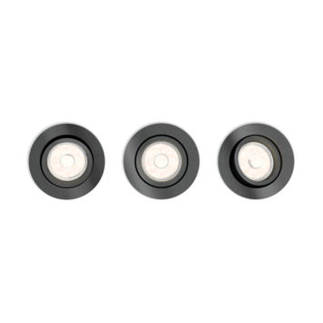 De Philips Donegal inbouwspots in de kleur donkergrijs zijn voorzien van een GU10 fitting en zijn geschikt voor lampen met een vermogen tot 5,5 watt. De inbouwspots (3 stuks) zijn richtbaar, zodat je de lichtstraal gemakkelijk kan afstellen. Dankzij het eenvoudig ontwerp passen de elegante inbouwspots in elk woonvertrek. Philips Donegal inbouwspots zijn gemaakt van hoogwaardig materiaal dat weinig onderhoud vergt. Kortom, de Philips Donegal inbouwspots zijn een goede accentverlichting voor in elk interieur. Ook verkrijgbaar in andere kleuren. Exclusief lichtbron.