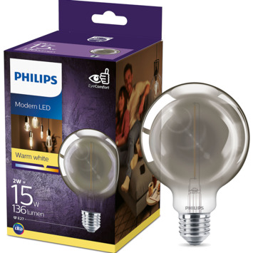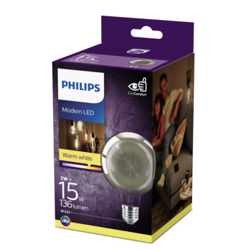 De Philips LED-lamp is gemaakt van zwart rookglas. Je kunt hiermee een warm en ontspannen sfeer creëren in de woonkamer. De verlichtingsbron heeft een lichtopbrengst van 136 lm en een kleurtemperatuur van 2700 K. Ideaal dus! De lamp bevat een E27 fitting en een vermogen van 2,0 W. Deze lamp valt onder energieklasse A+. Dit is één van de meest zuinige energieklasse. Kortom: de Philips LED-lamp is een ideale verlichtingsbron om een warme sfeer te creëren in de woonkamer.