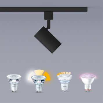 Het EasyLink systeem biedt onbeperkte uitbreidingsmogelijkheden met extra rails, spots of accessoires uit de serie. Omdat de starterkit zonder lampen wordt geleverd, kies je zelf de GU10 lichtbron, zoals LED met eigen kleurtemperatuur, energiezuinige UltraEfficient lampen of SceneSwitch met drie lichtstanden. Voor slimme bediening kan Philips Hue worden toegepast, waarmee je via de app dimt, timers instelt en wittinten of gekleurde verlichting kiest.