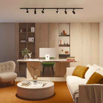 De draaibare en kantelbare spots laten je licht precies richten op specifieke onderdelen van de ruimte, zoals een schilderij, kast of leeshoek. Alle onderdelen klik je eenvoudig in en uit de rail zonder extra bedrading. Het verstelbare snoer van de hanglamp biedt volledige controle over de hoogte, en het robuuste zwarte metalen armatuur geeft een moderne, verzorgde en minimalistische uitstraling die lang meegaat.