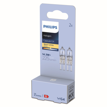 Philips ecohalogeen steeklamp 12V G4 14W 232lm 2900K dimbaar 2 stuks
