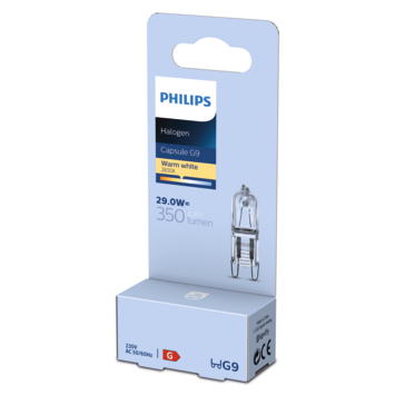 De ecohalogeen steeklamp G9 van Philips is een dimbare ecohalogeenlamp van 28 watt of 370 lumen met een warme witte lichtkleur. Combineer met een van de toffe lichtarmaturen van het gelijknamige merk of GAMMA. Tip: deze duurzame lamp is verkrijgbaar in verschillende wattages.