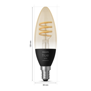 Op zoek naar slimme LED-lampen in vintage stijl met moderne twist? Dan zijn deze Philips Hue filament-kaarslampen met E-14 fitting wellicht iets voor jou! Deze filament-kaarslampen hebben een spiraalvormige gloeidraad die je doet denken aan de oude gloeilampen van vroeger. Geniet van de nostalgische lichtgloed in een trendy hang- of tafellamp en creëer de perfecte sfeer in huis met warm- tot koelwit licht. Ga voor extra sfeer bij een gezellig diner met vrienden dankzij de dimfunctie. De lampen zijn eenvoudig te bedienen met de Hue app, waar je kan kiezen uit 50.000 tinten warm- tot koelwit licht. Wil je toegang tot alle slimme functies zoals timers, automatiseringen of bediening als je niet thuis bent, koppel hem dan aan de Hue Bridge.