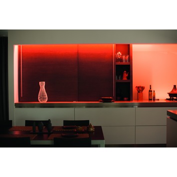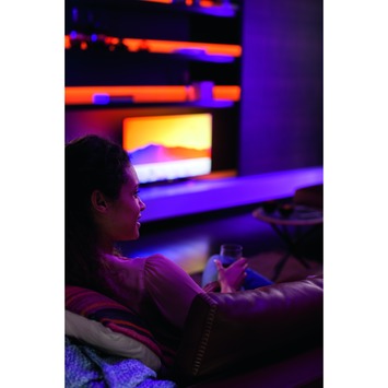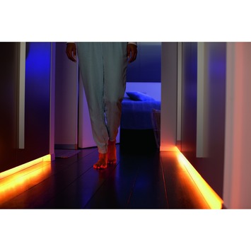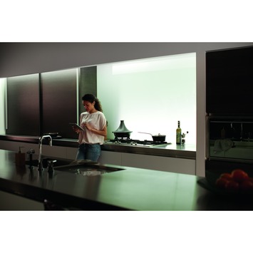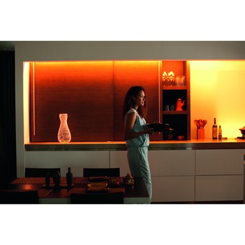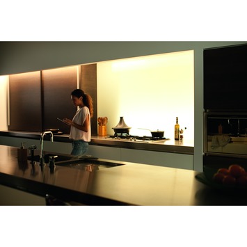 De Hue Lightstrip Color van Philips is de meest flexibele strip om bepaalde delen van je woning in de spotlight te zetten. Plaats de lichtstrip bijvoorbeeld langs planken, onder je tv of om je favoriete schilderij. De lichtstrip van 11 watt of 1600 lumen werkt op led, is flexibel en gaat erg lang mee. Verbind de LightStrip van 1 meter lang met de gratis Hue app, zodat je met 1 vinger je verlichting kan bedienen via je smartphone of tablet. Ook verkrijgbaar als strip van 2 meter. Goed om te weten: Philips Hue is een slim, energiezuinig verlichtingssysteem om je hele huis van gepersonaliseerd licht te voorzien. Het systeem maakt het mogelijk om je verlichting wireless te bedienen. Op die manier kan je - ook vanop afstand - de verlichting in alle kamers van je huis afstemmen op je persoonlijke voorkeur en behoeftes.