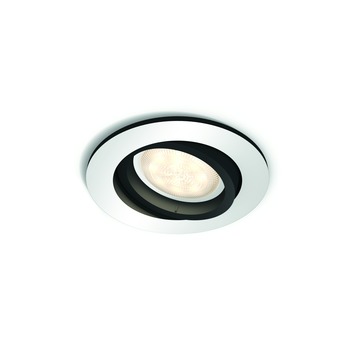 De aluminiumkleurige Hue Milliskin inbouwspot van Philips beschikt over een led van 5,5 watt. Deze ronde hoogwaardige inbouwspot is duurzaam en zorgvuldig ontworpen. Het natuurlijk witte licht van deze dimbare én verstelbare spot helpt je daarenboven om te ontwaken, energieker te worden, te focussen, te lezen en te ontspannen. Inclusief lichtbron en dimmer, exclusief bridge en schakelaar. Beide kan je apart kopen in de winkel of de webshop van GAMMA. Goed om te weten: Hue is slimme, energiezuinige verlichting van Philips voor in heel je huis. Deze ledverlichting maakt het mogelijk om je verlichting wireless te bedienen via een gratis app op je smartphone of tablet. Op die manier kan je, ook vanop afstand, de verlichting in alle kamers van je huis afstemmen op jouw persoonlijke voorkeur en behoefte.