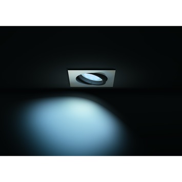 De aluminiumkleurige Hue Milliskin inbouwspot van Philips beschikt over een led van 5,5 watt. Deze vierkante hoogwaardige inbouwspot is duurzaam en zorgvuldig ontworpen. Het natuurlijk witte licht van deze dimbare én verstelbare spot helpt je daarenboven om te ontwaken, energieker te worden, te focussen, te lezen en te ontspannen. Inclusief lichtbron en dimmer, exclusief bridge en schakelaar. Beide kan je apart kopen in de winkel of de webshop van GAMMA. Goed om te weten: Hue is slimme, energiezuinige verlichting van Philips voor in heel je huis. Deze ledverlichting maakt het mogelijk om je verlichting wireless te bedienen via een gratis app op je smartphone of tablet. Op die manier kan je, ook vanop afstand, de verlichting in alle kamers van je huis afstemmen op jouw persoonlijke voorkeur en behoefte.
