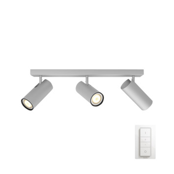 De Philips Buratto is een witte metalen lamp in een moderne stijl. De spotlamp is dan ook zeer geschikt voor de woon- en slaapkamer met een strak interieur. Bij de lamp zit een draadloze dimmer en GU10 Ledlamp. Je kan de dimmer overal plaatsen of juist als afstandsbediening gebruiken. Door te dimmen kan je altijd de juiste sfeer aan een kamer geven, hoe meer je de lamp dimt hoe warmer de sfeer wordt. De spots geven een koel wit licht en je kan switchen tussen een helder licht om te kunnen concentreren of een warmer licht om lekker te kunnen ontspannen. Deze lamp werkt in combinatie met de Hue Bridge. Zo heb je nog veel meer mogelijkheden waarvoor je de lamp kan gebruiken. Kortom, met de Philips Opbouwspot Hue Buratto LED aluminium met Dimmer 3 x 5,5W heb je altijd de juiste belichting voor het juiste moment.
