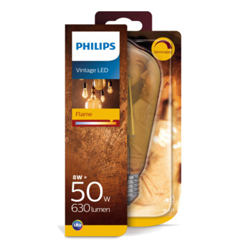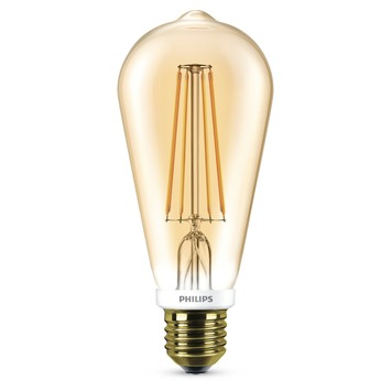 De Philips LED Classic Edison type E27 zorgt voor authentieke verlichting met een duurzaam verbruik, dankzij een ledlamp van 7 watt of 630 lumen. De dimbare lamp met zichtbaar filament in de kleur Flame past in elke ruimte en heeft nog meer karakter als je 'm ophangt in een combinatie van drie, vijf, enzovoort. Hang op met een retro pendel die je ook in de webshop van GAMMA vindt.