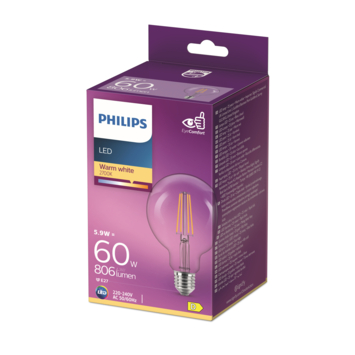 De Philips LED Classic globelamp zorgt voor authentieke verlichting met een energiezuinig verbruik, dankzij een ledlamp van 6 watt of 806 lumen. De heldere globe met zichtbaar filament in de kleur warm wit past in elke ruimte en heeft nog meer karakter als je 'm ophangt in een combinatie van drie, vijf, enzovoort. Hang op met een retro pendel die je ook in de webshop van GAMMA vindt.