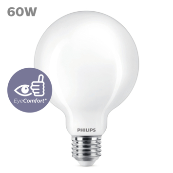 Vervang uw oude lamp door een nieuwe energiezuinige Philips LED-lamp, met warmwit licht. Deze globelamp verbruikt circa 80% minder energie dan traditionele lampen dankzij de nieuwste energiezuinige LED-technologie en ze gaan tien keer langer mee. Met EyeComfort, voor licht dat aangenaam is voor uw ogen. Deze lamp heeft een E27-fitting, en past dus in de meeste lampen met grote fitting.