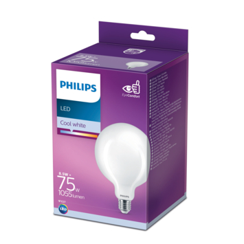 Vervang uw oude lamp door een nieuwe energiezuinige Philips LED-lamp, met koelwit licht. Deze globelamp verbruikt circa 80% minder energie dan traditionele lampen dankzij de nieuwste energiezuinige LED-technologie en ze gaan tien keer langer mee. Met EyeComfort, voor licht dat aangenaam is voor uw ogen. Deze lamp heeft een E27-fitting, en past dus in de meeste lampen met grote fitting.