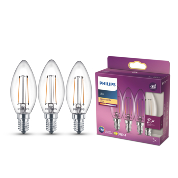 Philips LED kaars E14 1,9W filament helder niet dimbaar 3 stuks