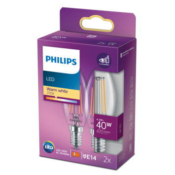 Philips LED kaars E14 40W filament helder niet dimbaar 2 stuks