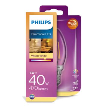 LED is een energiezuinig alternatief voor de halogeenlamp, spaarlamp en gloeilamp. Door te kiezen voor LED-verlichting, ben je duurzaam bezig en bespaar je meer op je energiekosten. De Philips LED-verlichtingsbron heeft een lichtopbrengst van 470 lm en een kleurtemperatuur van 2700 K. Dit is een warme lichtkleur. Hiermee kun je een aangenaam warme sfeer creëren. De lamp heeft een E14 fitting en een vermogen van 6 W. Deze lamp valt onder energieklasse A+. Dit is één van de meest zuinige energieklassen. Ook is deze lamp dimbaar door middel van een lichtschakelaar. Kortom: de Philips LED-lamp is een prettige verlichtingsbron voor in de woonkamer.