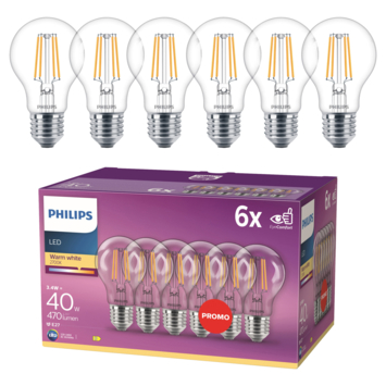 Philips LED peer E27 3,4W filament helder niet dimbaar 6 stuks