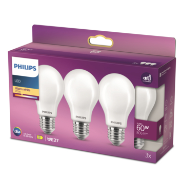 Vervang je oude lamp door een nieuwe energiezuinige Philips LED-lamp, met warmwit licht. Deze standaardlampen verbruiken circa 80% minder energie dan traditionele lampen dankzij de nieuwste energiezuinige LED-technologie en ze gaan tien keer langer mee. Met EyeComfort, voor licht dat aangenaam is voor uw ogen. Deze lampen hebben een E27-fitting, en passen dus in de meeste lampen met grote fitting.