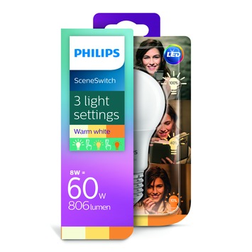 Philips LED peerlamp E27 mat 8W = 60W 806 lumen Scene switch