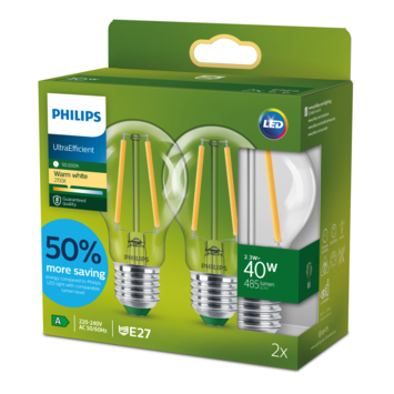 De Philips LED peerlamp UltraEfficient transparant E27 40W warmwit licht combineert hoge energie-efficiëntie met langdurige prestaties. Deze heldere filamentlampen met energielabel A verbruiken tot 50% minder energie dan standaard LED-verlichting en hebben een indrukwekkende levensduur tot 50.000 uur. Dankzij de E27-fitting en een spanning van 230 V zijn ze eenvoudig te plaatsen in bestaande armaturen en bieden ze meteen betrouwbare verlichting.