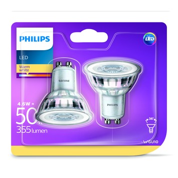 Philips LED spot GU10 glas 4,6W = 50W 355 lumen 2 stuks