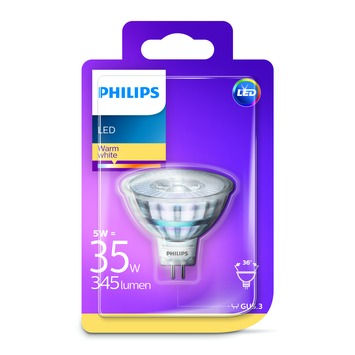 De spot GU5.3 van Philips is een ledlamp van 3,5 watt of 345 lumen met een warme witte lichtkleur. Combineer met een van de toffe lichtarmaturen van het gelijknamige merk of GAMMA. Tip: deze duurzame lamp is verkrijgbaar in verschillende wattages.