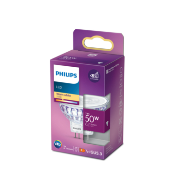 Vervang uw oude spotlamp door een nieuwe energiezuinige Philips LED-spot, met warmwit licht. Deze spot verbruikt circa 80% minder energie dan traditionele lampen dankzij de nieuwste energiezuinige LED-technologie en ze gaan tien keer langer mee. Met EyeComfort, voor licht dat aangenaam is voor uw ogen. Deze lampen hebben een GU5.3-fitting en gaan vaak perfect samen met uw in- of opbouwspots.