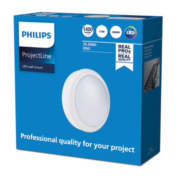 Deze energiezuinige Philips ProjectLine wandlamp past in elk interieur door het tijdloze ontwerp, de ronde vorm en witte rand. Ideaal voor gangen, (openbare) entrees en trappenhuizen dankzij het krachtige natuurlijk witte licht. Ook geschikt voor gebruik in vochtige ruimtes. Bovendien is de lamp ook geschikt voor buitenhuis dankzij de IP65 beschermingsgraad, stof- en waterstralen bestendig. Je kunt deze wandlamp gemakkelijk monteren aan de muur.