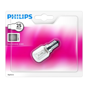 Philips heeft kleine en grote lampen voor verschillende verlichtingsarmaturen. Ze hebben zelfs een vervangingslampje voor je microgolfoven in hun assortiment. Koop dit microgolfovenlampje in de winkel of de webshop.