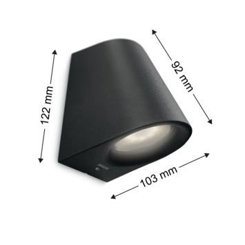 Philips heeft een verlichtingsarmatuur voor elke ruimte. Voor de verlichting van je tuin ontwikkelden ze zelfs een speciale serie met traditionele, eigentijdse en moderne ontwerpen: myGarden. Welk ontwerp je ook kiest, de armaturen zijn steeds functioneel. Virga is een halfronde wandlamp uit zwart aluminium met een 1 geïntegreerde ledlamp.