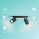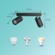 De Philips Idris plafondspots hebben een strak en stijlvol, modern ontwerp dat ook nog eens watervast is. Hierdoor zijn deze spots ideaal voor in je badkamer, maar ook in andere kamers zullen ze zeker tot hun recht komen. Ook gaat het zwarte, minimalistische design goed samen met verschillende interieurstijlen. Je kunt de twee spots alle kanten op richten, zodat je altijd het juiste licht hebt op plekken waar dat het meest nodig is. Het ClickFix ontwerp zorgt ervoor dat de installatie van deze lamp kinderspel is. Stapsgewijs monteer je de basis aan het gewenste oppervlakte waarna je de lamp eenvoudig vastklikt. Je zult dus geen handen tekort komen bij het monteren van deze lamp. Lampen zijn niet inbegrepen, waardoor je je verlichting zelf kunt personaliseren: ga voor duurzaam en kies een Ultra Efficient GU10 spot, kies voor meer sfeer met een spot met SceneSwitch technologie, of maak er slimme verlichting van met Philips Hue. Let er bij je keuze op dat deze spots een maximaal vermogen van 5W aankunnen, en dus alleen geschikt zijn voor LED verlichting.