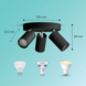 De drie spots zijn richtbaar, zodat je het licht precies kunt richten waar je het nodig hebt. Dankzij het ClickFix-systeem is de montage eenvoudig: je bevestigt eerst de basis en klikt daarna de lamp vast.