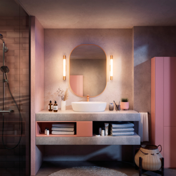 De Philips Rover badkamerspot heeft een strak, cilindervormig en watervast ontwerp en is geschikt voor montage boven of naast de badkamerspiegel. De messingkleurige afwerking geeft de lamp een moderne en luxe uitstraling die in vrijwel elke badkamer past.