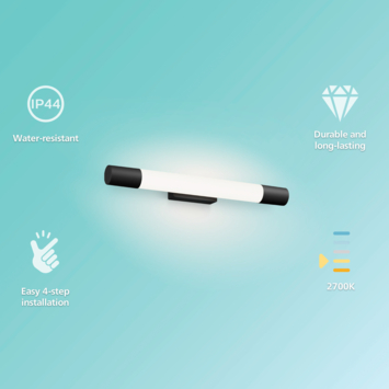 De Philips Rover badkamerspot heeft een strak, cilindervormig en watervast ontwerp. Hierdoor is de lamp geschikt om boven of naast de badkamerspiegel te plaatsen. Het minimalistische zwarte design past in vrijwel iedere badkamer.